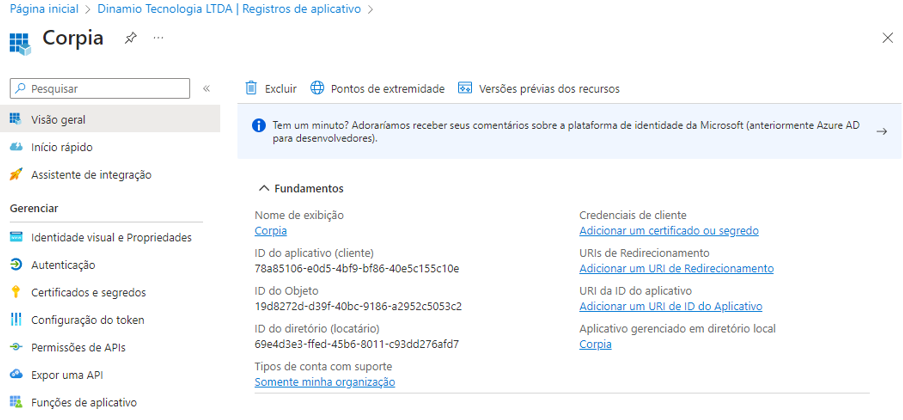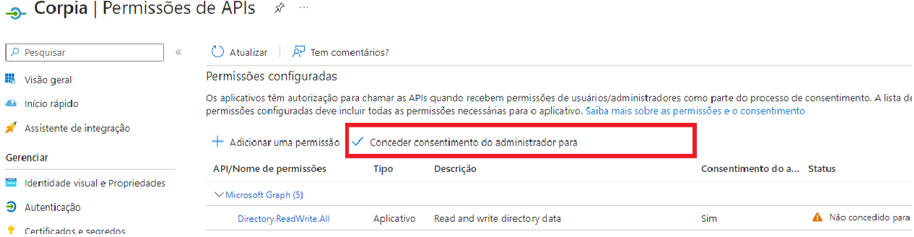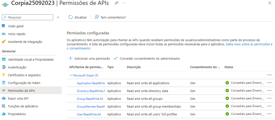 Este guia tem como objetivo fornecer orientações e informações sobre as permissões necessárias para o registro do aplicativo para gerenciamento de acessos no Microsoft 365 pelo Corpia.
