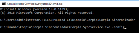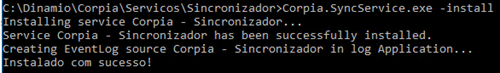 Diretório para registro de log. Diretório sugerido C:\Dinamio\Corpia\Logs\Sincronizador |