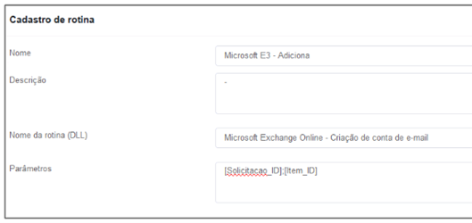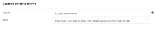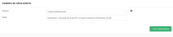 Em cadastro de rotina externa, criar conector para execução de script em powershell