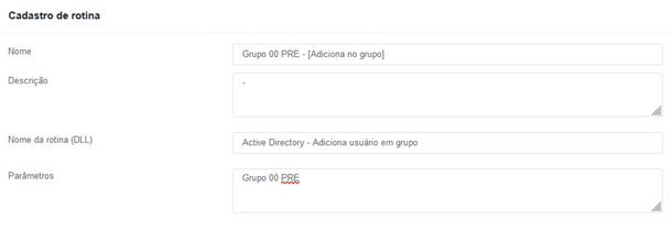 Criar o conector em cadastro de rotina externa para adicionar usuário em grupos