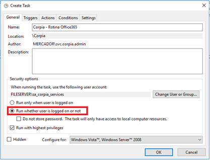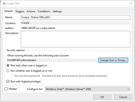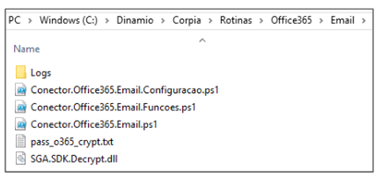 Criar a pastar Office365 em “C:\Corpia\Rotinas\” e descompactar o “Conector Office365 - E-mail e Licença” (Link)