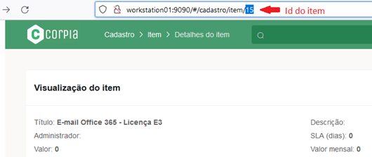 Id do item criado do no Corpia Obs.: Para criação de item, consultar tópico 4.6.1 |