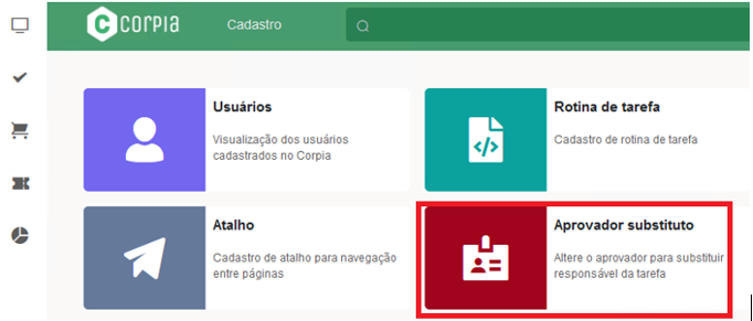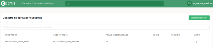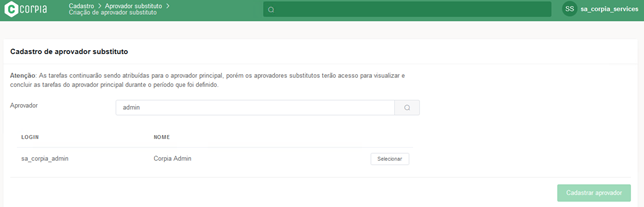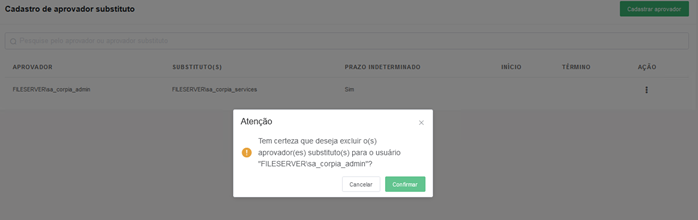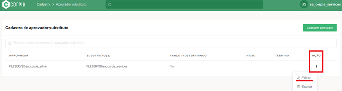 Na tela de cadastro será listado os usuários cadastrados como aprovadores substitutos