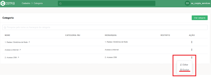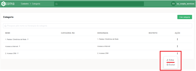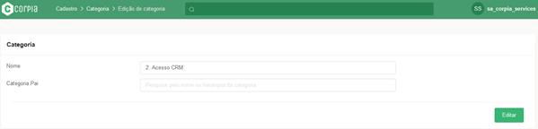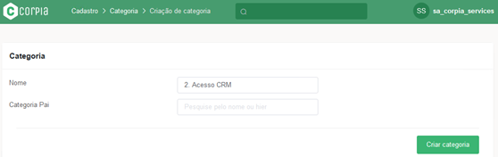 Clicar em “Criar Categoria” para realizar um novo cadastro