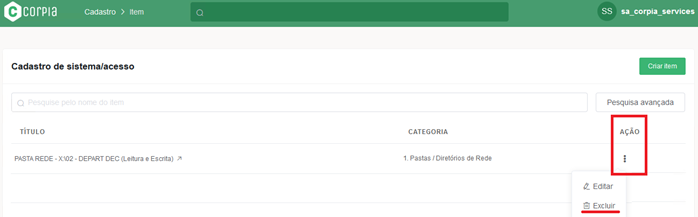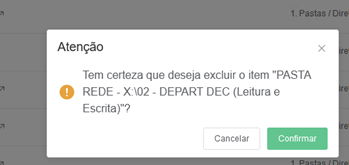Caso o item esteja ou em algum momento foi vinculado a um usuário/Perfil, não será possível realizar sua exclusão