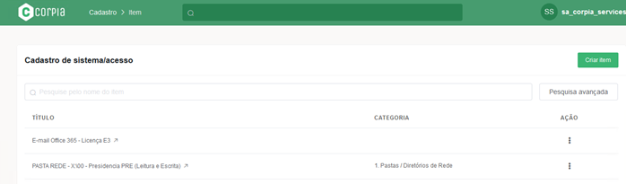 Clicar em “Criar Item”, será direcionado para tela “Criação de Item”