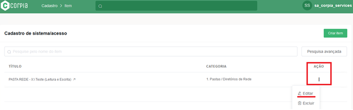 Na página "Edição de Item", você encontrará os mesmos campos utilizados na configuração para criação do item.