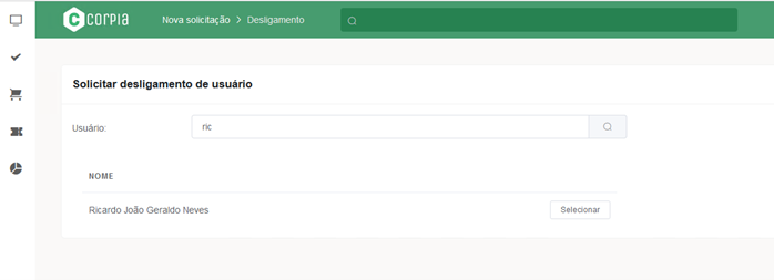Na página "Desligamento de Usuário", utilize a barra de pesquisa para localizar o usuário que será desligado.