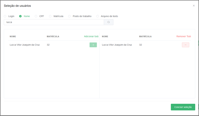 Para adicionar os usuários que irão receber os recursos selecionados, clicar em “Adicionar usuários”