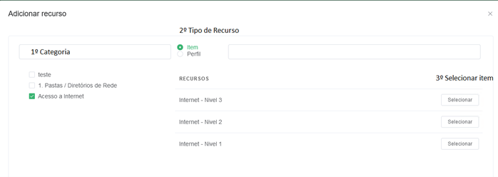 Na tela “Adicionar recurso”, realizar os seguintes passos: