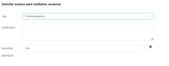 Página utilizada para realizar a solicitação de provisionamento e desprovisionamento para múltiplos usuários.